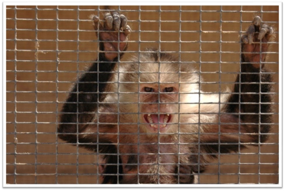 兩隻猴子A與B,分別關在各自的透明壓克力籠子裏,他們都看得到對方和實驗員。